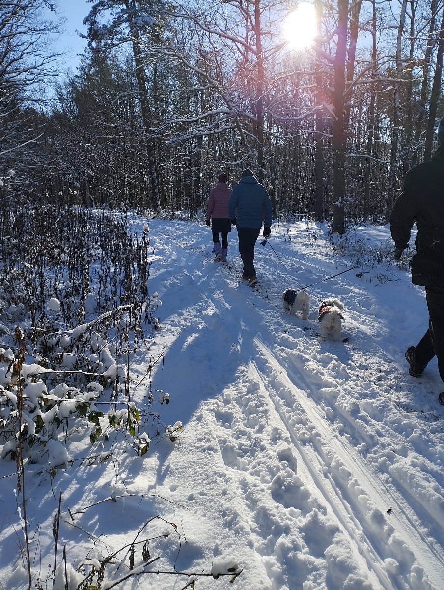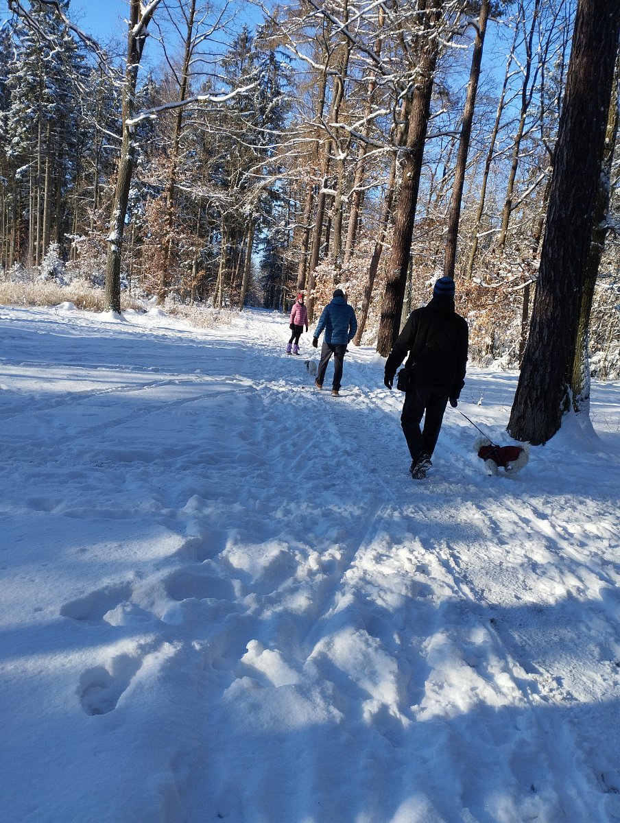 V neděli psal Valda s paničkou, jestli chceme jít s nimi zase do lesa. Chtěli jsme. Oni u nás stejně měli jeden zapomenutý vánoční dárek a taky ještě lyže po paničce, které má dostat Ema. Všechno jsme to vzali s sebou, i bramboračku a palačinky, co přichystala panička k obědu, a šli jsme pak s nimi na procházku. Tam teda bylo sněhu, ještě víc než u nás.